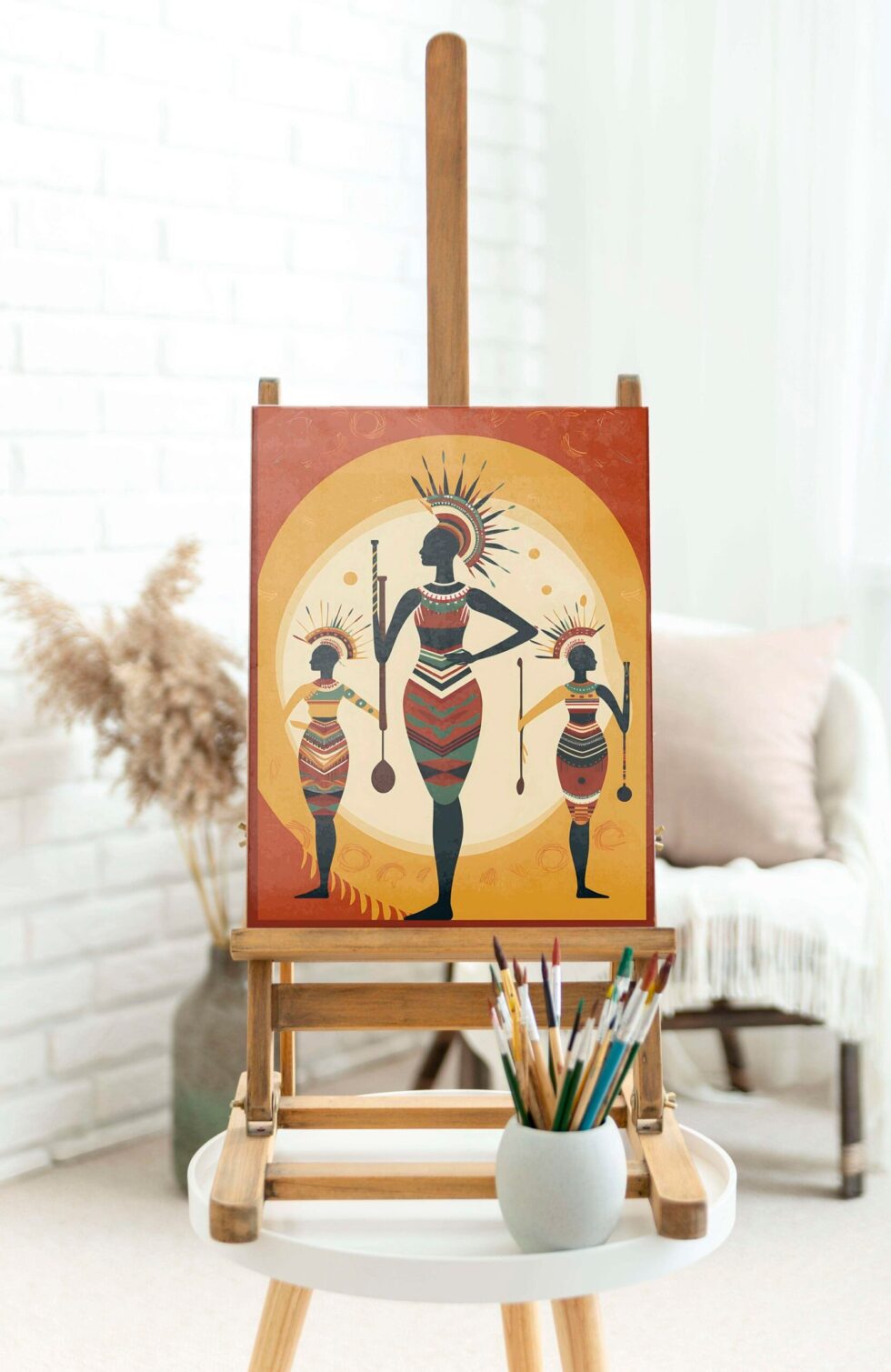 Brighten your space with a golden round framed painting full of charm and style.